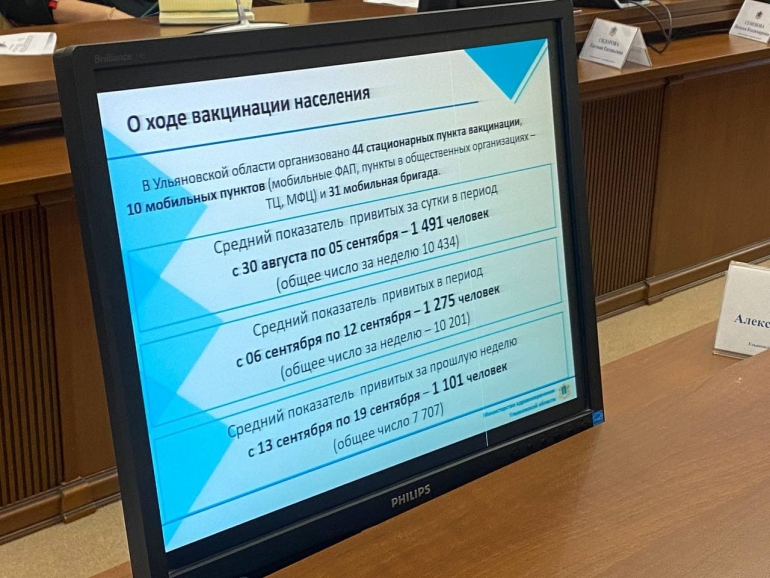 Министр здравоохранения региона Александр Гашков доложил о вакцинации. Темпы падают еженедельно: если с 30 августа по 5 сентября за сутки прививался 1491 человек, то за минувшую неделю — уже 1101. Полностью вакцинировались 300 900 жителей Ульяновской области, или 69,3% от населения старше 18 лет.