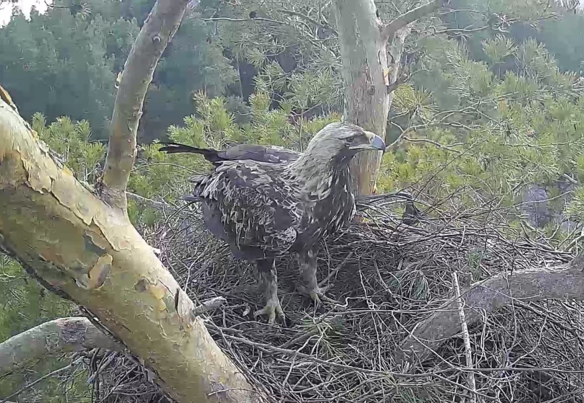 Из всех трёх яиц вылупились птенчики, но потом один из них умер. Два других орлёнка подросли, их назвали Сеня и Геля. Осенью птицы покинули гнездо, а вот теперь вернулись, но не все.