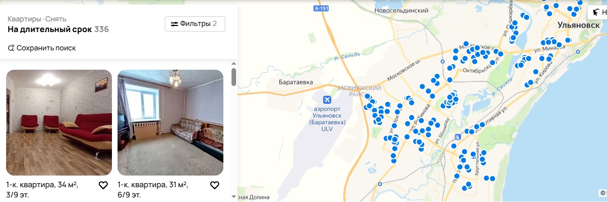 Чтобы проанализировать рынок съемного жилья в Ульяновске, корреспондент 73online.ru обратился к одной из популярных платформ объявлений «Авито». На момент подготовки материала на портале было опубликовано 675 объявлений, предлагающих длительную аренду, и 1153 — посуточную.