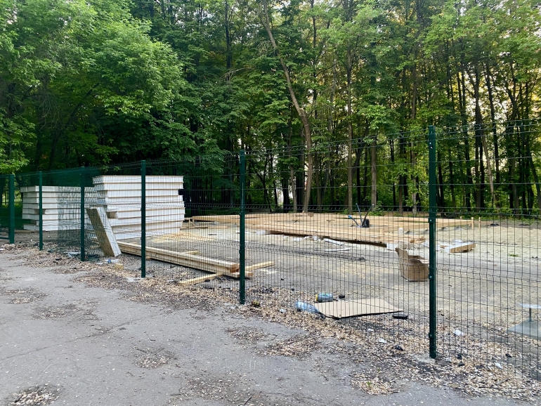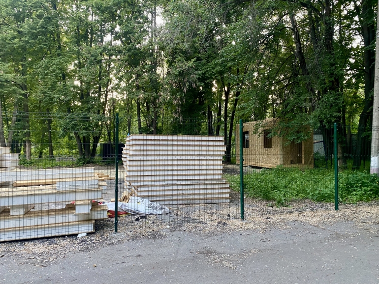 Несмотря на праздник, идет строительство зоны для альпак. На площади более 3000 квадратных метров построят вольеры: два — с альпаками, один — с кроликами, и отдельнаязона — с камерунскими козочками. Откроют к концу июня. Проверим.