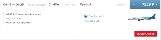 Согласно сайту авиакомпании Nordwind, из Ульяновска в Симферополь можно будет улететь по понедельникам и пятницам. Стоимость билета начинается от 7329 рублей. Вылет - в 4:45 утра, прибытие - в 6:25. Рейсы будут выполняться самолетом Embraer E-190. Обратные вылеты - по четвергам и воскресеньям. Билеты уже есть в продаже.