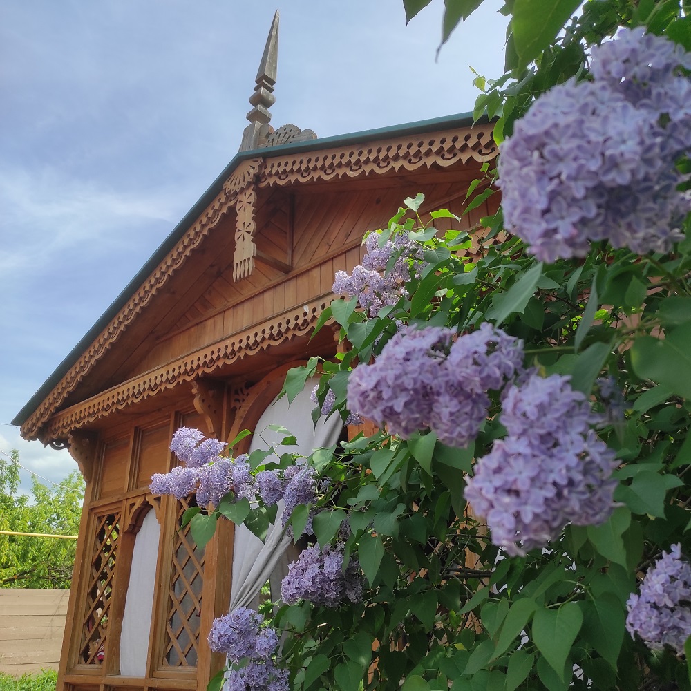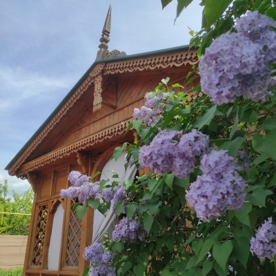 В фондах Музея-заповедника «Родина В.И. Ленина» хранятся фотографии, сделанные на даче купцов. На одном из снимков хорошо видно деревянную резную беседку с лестницей и крыльцом. Вазоны украшают перила. Крыша — будто цветок-колокольчик. Лаконичная и будто строгая, беседка в самом деле богато изукрашена, видно умение и старание мастеров.