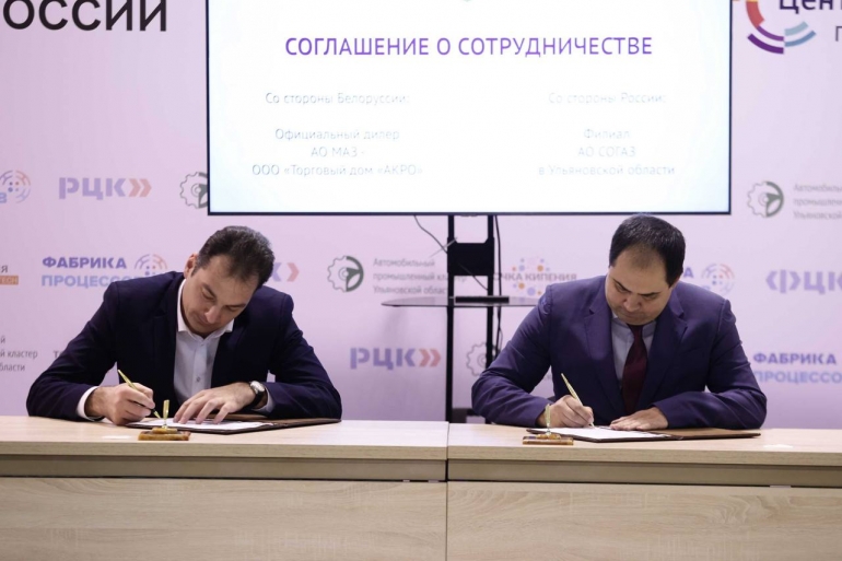 Губернатор Русских предложил рассмотреть возможность создания «Белорусского индустриального парка» на территории ОЭЗ «Ульяновск». Площадка объединит в себе склад и центр оптовой торговли, а также станет базой для сборочного производства белорусских предприятий. Кроме того, договорённости по промкооперации уже воплощаются в жизнь: подписано соглашение между Ульяновским филиалом АО «СОГАЗ» и ООО «ТД «АКРО» о поставках колёсной техники производства «Минского автомобильного завода» в 2023 году. Также достигнуты договоренности по кооперации в авиастроении.