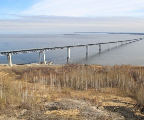 Президентский мост введен в эксплуатацию в декабре 2009 года. Строительная длина сооружения составляет 12976 м. В его составе 26 опор, 25 полётов и 2 яруса. Самая высокая опора – 60 м над уровнем воды. Интенсивность движения - более 25 тысяч автомобилей в сутки.