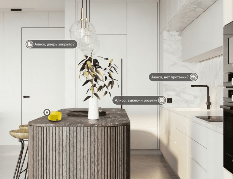 Комплектация «Защитиум» также включает голосовое управление через Яндекс станцию с Алисой и контролёр умного дома. В данном режиме квартира оснащена датчиком, который напомнит об открытых дверях, если вы выходите из дома или ложитесь спать. Вы всегда будете уверены в том, что ваш дом в безопасности, а двери надежно закрыты.