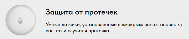 Кроме того, умные датчики, установленные в мокрых зонах, оповестят в случае возникновения протечки.