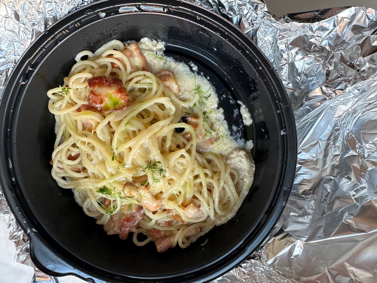 Мы остановились на одной позиции, которая есть практически в каждом заведении - Карбонара. Она считается одной из самых популярных итальянских паст в мире.
