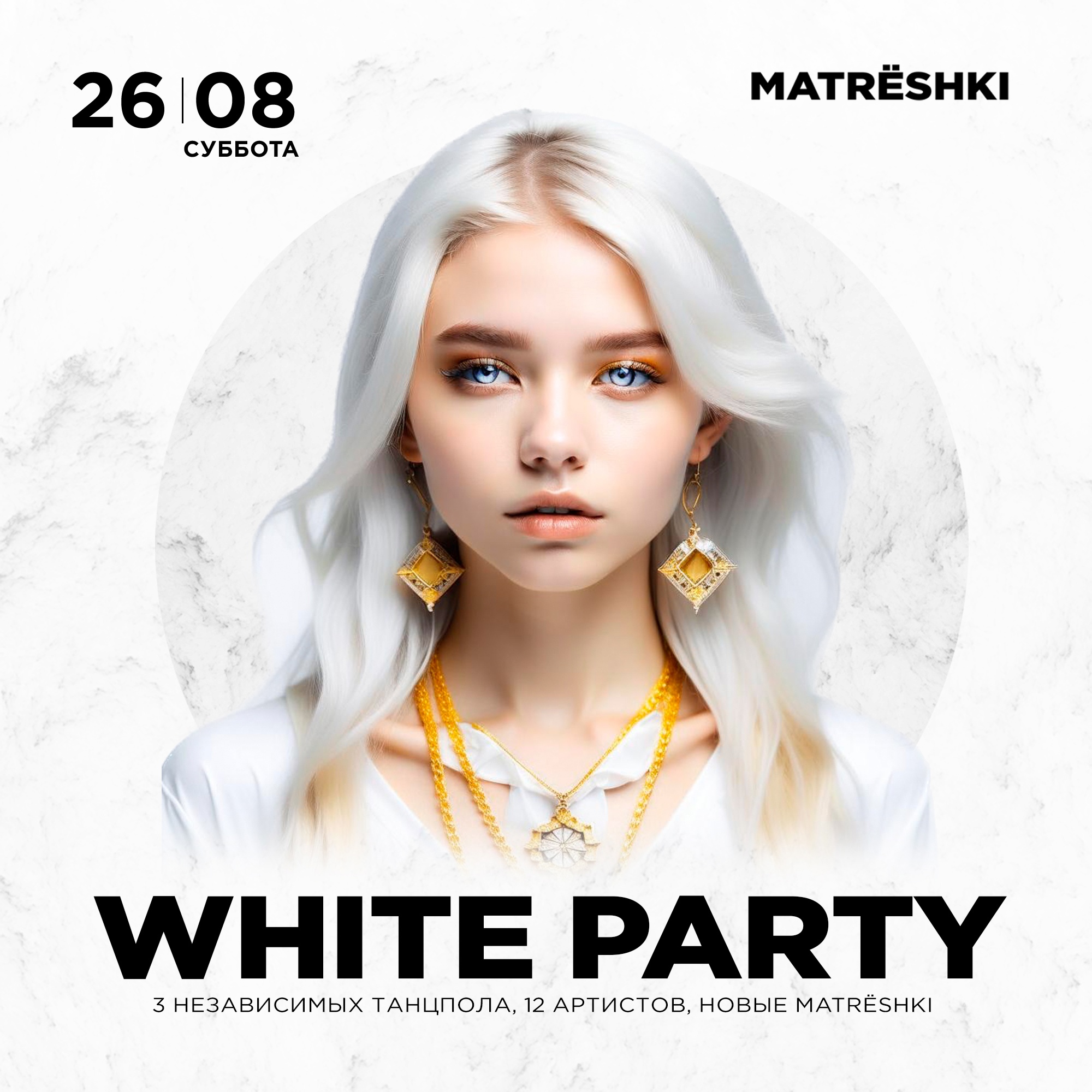 Вас ждет: три независимых танцпола, 12 приглашенных диджеев, белое оформление всех залов, приветственные напитки до 01:00.