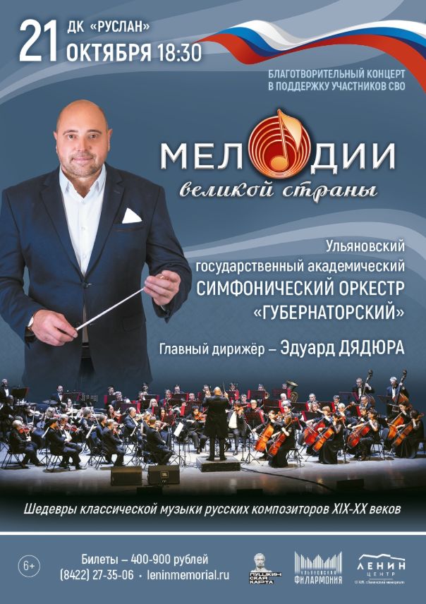 Министерство культуры сообщает, что 21 октября в ДК «Руслан» состоится концерт Ульяновского государственного академического симфонического оркестра «Губернаторский». Начало в 18.30.