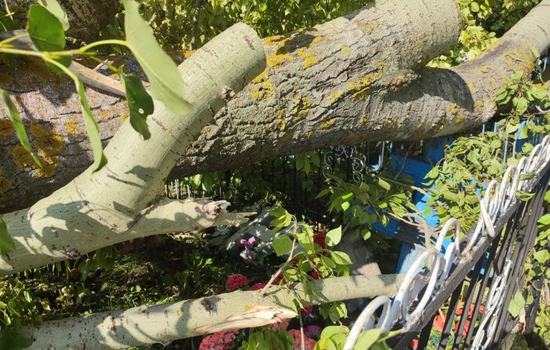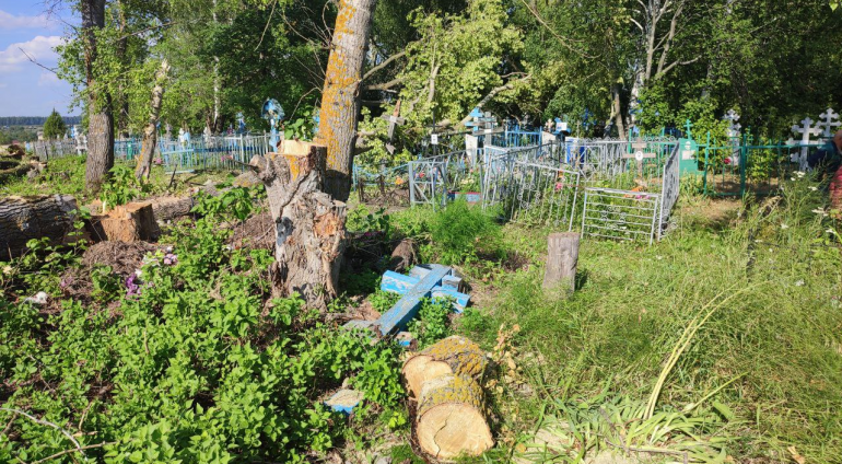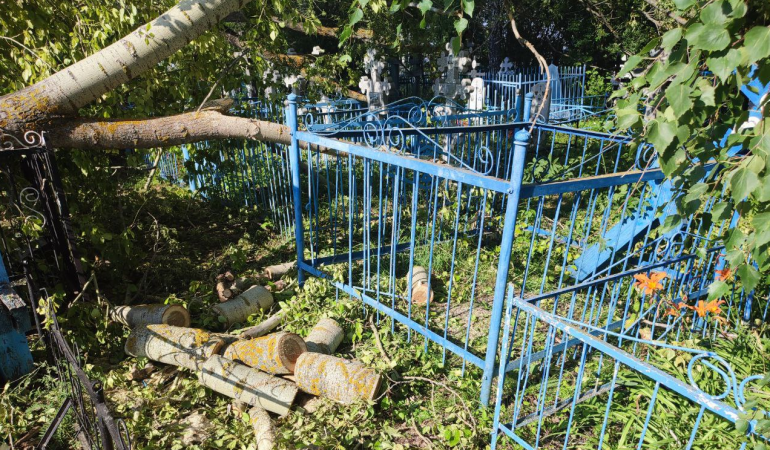 Как сообщают местные жители в телеграм-канале «Карсун сегодня», на кладбище сносили деревья, а подрядчик настолько вошёл во вкус, что ему было всё равно, куда они падают.