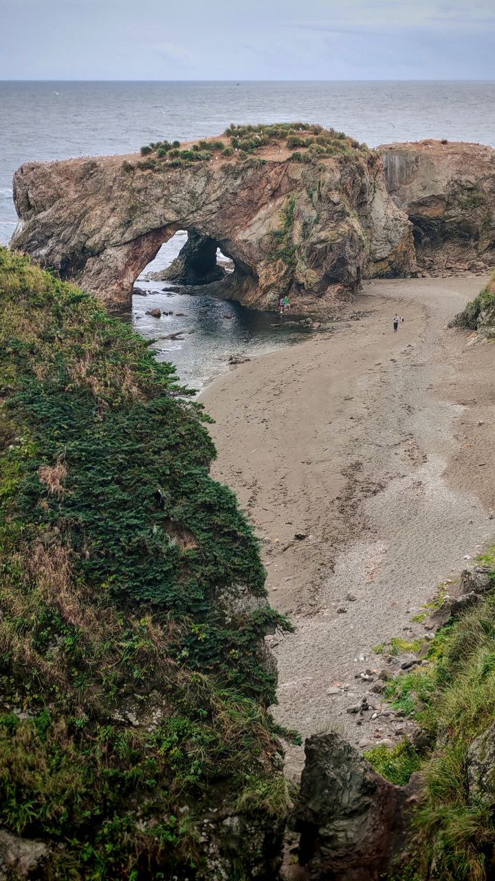 Успели прогуляться по волшебному лесу Птичьей, спустились на пляж, я уже достал коптер, как и тут заморосило. Не стал рисковать нежной машинкой, не взлетел. А так хотелось пролететь насквозь эти живописных арки, распугав чаек!
