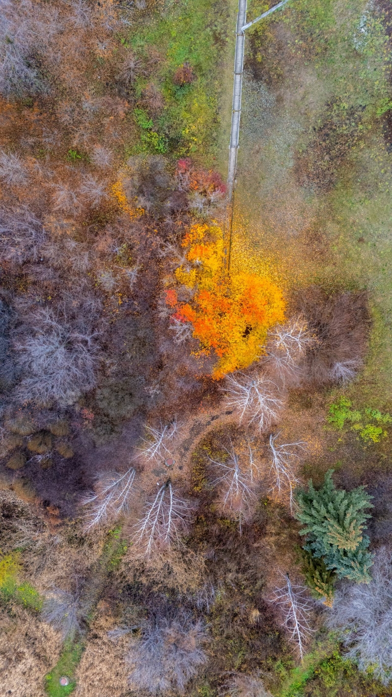 Блогер и фотограф Игорь Литва поделился со своими подписчиками локацией необычной красоты. Это место, где деревья имеют очень яркую листву желтого и красного цвета в окружении оттенков зеленого.