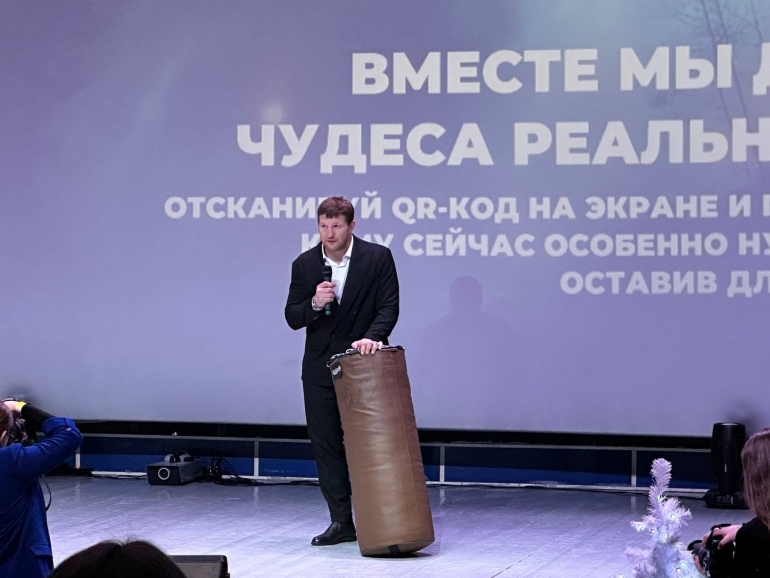Владимир Минеев выставил боксерскую грушу со своей подписью и автографом своего вечного визави Магомеда Исмаилова, а Никита Кологривый привез боксерские перчатки.