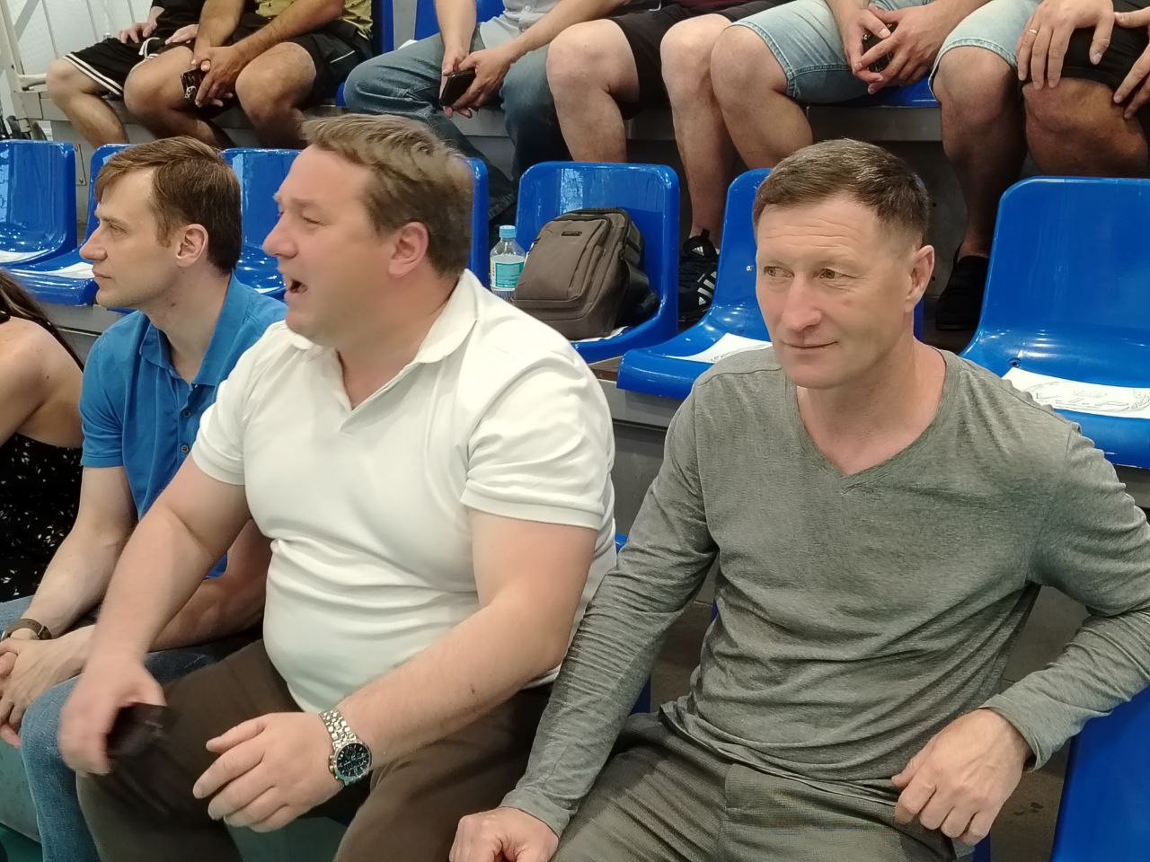 Начальник управления внутренней политики региона Антон Буторин и глава Ульяновска Александр Болдакин, наблюдающие за игрой в компании с главным по футболу Ринатом Аитовым, обсуждают ход матча. А в начале второго тайма Болдакин даже... вступает в игру: мяч летел в сторону трибун, и тот отбил его. Да ещё и головой. «Кто-то снял?», — улыбается глава города. И отвечает кому-то из болельщиков: «На замену мне рано».