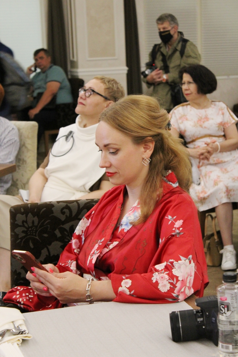 Многие гостьи в этот день выбрали одежду, напоминающую о Японии – нежные цвета, легкие текстуры и кимоно. Сама Наталья Рыжикова на лекции была в блузе от Kenzo.