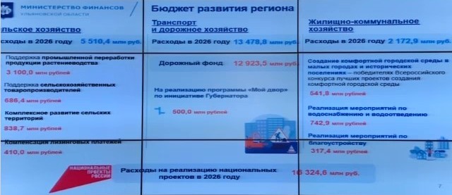 На финансирование жилищно-коммунального хозяйства направят ₽2,2 млрд — ключевые проекты направлены на модернизацию инфраструктуры: систем водоснабжения и водоотведения в нескольких муниципальных образованиях, включая город Ульяновск.