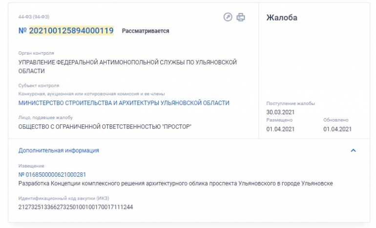 В УФАС обратился Кирилл Штемпель - директор компании ООО "Простор", которая оказалась вторым номером по итогам аукциона на разработку дизайн-кода проспекта Ульяновский, предложив за свою работу 1,4 млн рублей. Победу одержал ООО "Ленавтосервис" из Ленинградской области, который занимается обслуживанием автотранспорта, предложив всего 600 тысяч рублей за свои услуги. Начальная цена контракта составляла 1,7 млн. Заявитель в жалобе отмечает, что победитель не представил документы, подтверждающие свою квалификацию для создания архитектурного проекта, чего требует конкурсная документация, также осталось неизвестным количество специалистов в штате с высшим образованием в области архитектуры и градостроительства и необходимым опытом работы.