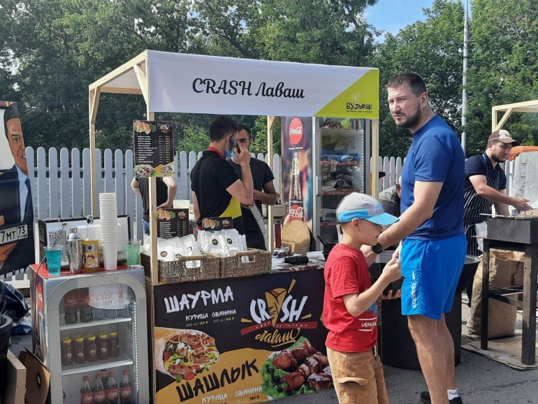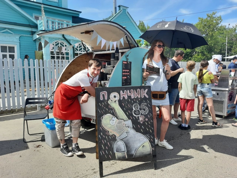 Но самой большой популряностью пользовалась площадка с рестораторами. Голодные ульяновцы выстраивались в огромные очереди за бургерами, жареными сосисками и напитками.