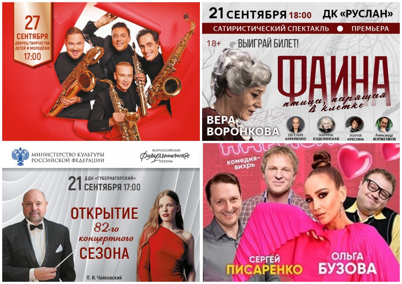 Сезон столичных театральных антреприз начнётся 17 и 21 сентября. 17-го в ДК «Губернаторский» в 19.00 — комедия «Мужчина нарасхват» (16+) с поп-дивой Ольгой Бузовой, звёздами КВН Евгением Никишиным и Сергеем Писаренко и популярным сериальным актёром Павлом Гайдученко. Расскажут про недостатки почти олигархов. Билеты от 1800 до 4500 рублей, купить можно здесь.