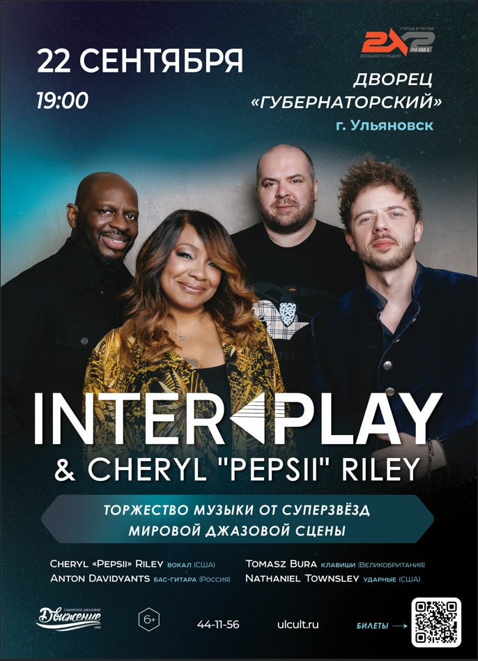 Звёздный концертный сезон в ДК «Губернаторский» откроется 22 сентября в 19.00 выступлением звёзд мирового джаза певицы Шерил Пепси Райли и интернационального трио Interplay (6+). Билеты купить можно здесь.