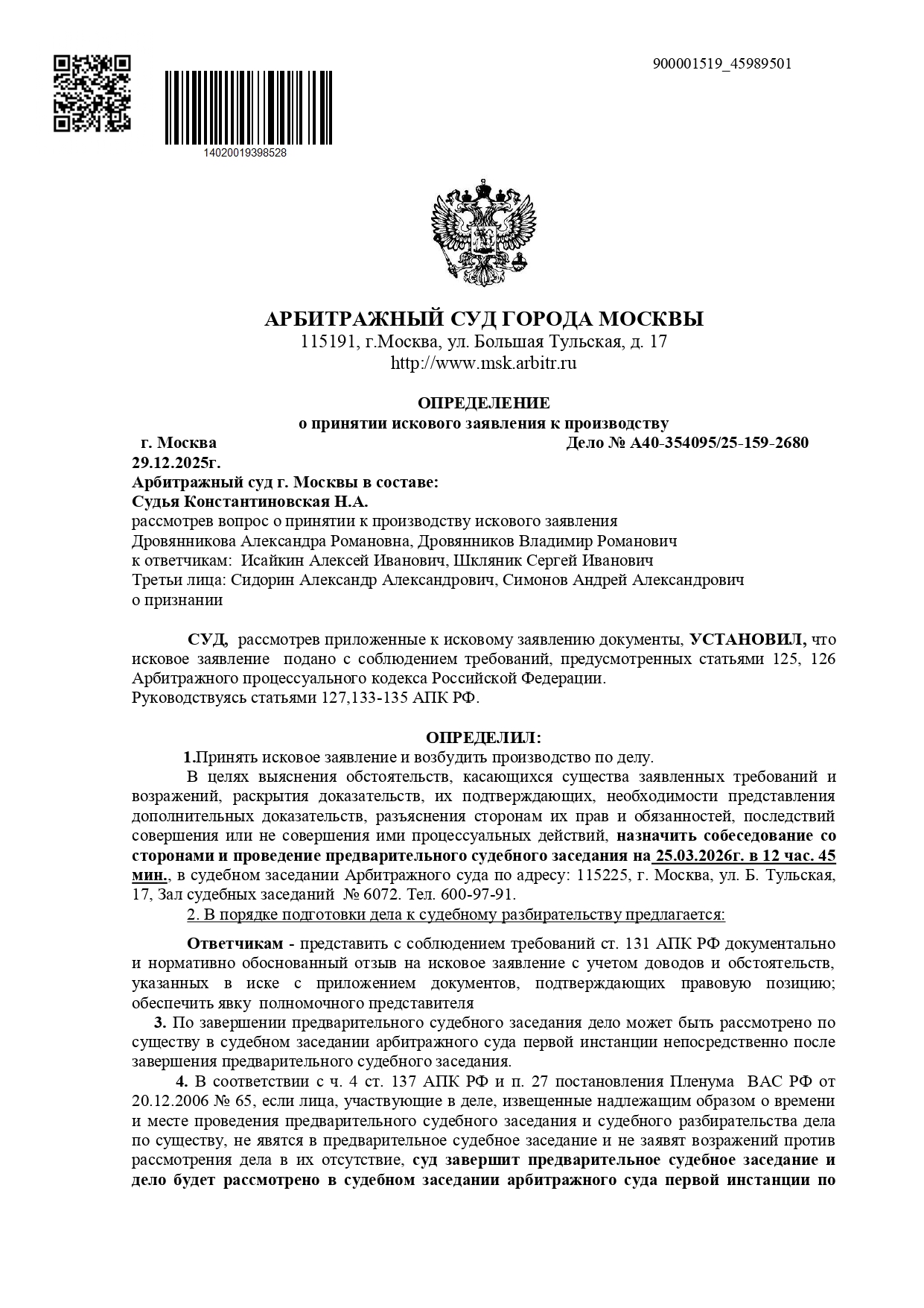 В последствии эти средства ушли на погашение задолженности «Атрана» перед иностранным собственником. И именно эту сделку пытаются оспорить наследники Романа Дровянникова. Заседание Арбитражного суда Москвы по делу назначено на 25 марта 2026 года.