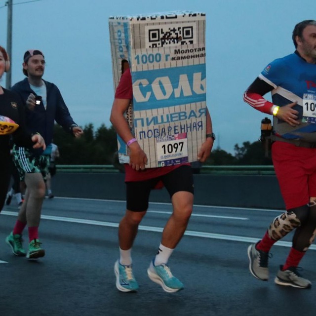 Для Верлоса марафоны давно перестали быть только спортом. Он превратил их в площадку для креатива и самовыражения. В его «коллекции» уже десятки образов: казанский полумарафон Евгений бежал в костюме большого хинкали, пермский — в ковре и с выбивалкой для этого ковра, «Белые ночи» в Санкт-Петербурге — в пачке поваренной соли.