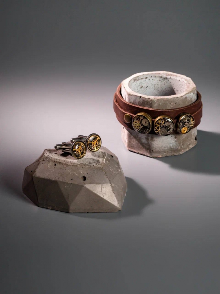 Авторские украшения из часовых деталей и механизмов — это что-то действительно необычное! Основатель и дизайнер бренда SERGUNINA Екатерина Сергунина создает серьги, браслеты, кулоны, запонки, зажимы для галстука, флеш-карты в стиле steampunk, который воспевает эстетику и главенство механики. Для создания украшений используются настоящие детали из механических часов.