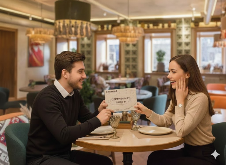 Если хочется попробовать аутентичные аджарские блюда, приготовленные по традиционным рецептам, то в качестве подарка можно выбрать сертификат на романтический ужин в ресторане «Лаmazo» (ул. Федерации, 6). Такой подарок подойдет тем, кто ценит вкусную еду, приятную обстановку и хочет провести время в компании любимых людей, наслаждаясь спокойной атмосферой.