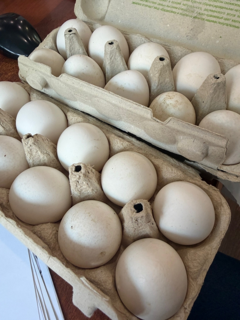 Самый медийный аграрий региона и обладатель самого завидного загара Александр Чепухин ворвался в нашу редакцию, словно свежий ветер с Персидского залива. Пришел не с пустыми руками, а с «золотым запасом» — притащил три десятка отборных яиц от собственных курочек. Видимо, намекает: пока у кого-то дефицит, у него — профицит и натурпродукт.