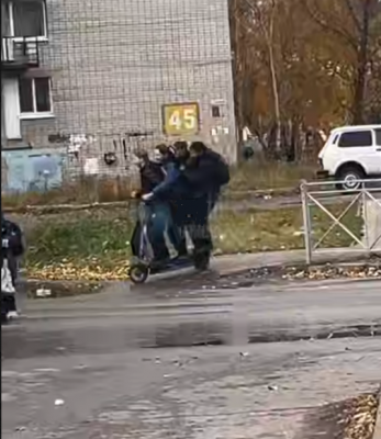 В сеть попало видео лихой поездки самокатчиков в 19-м микрорайоне.