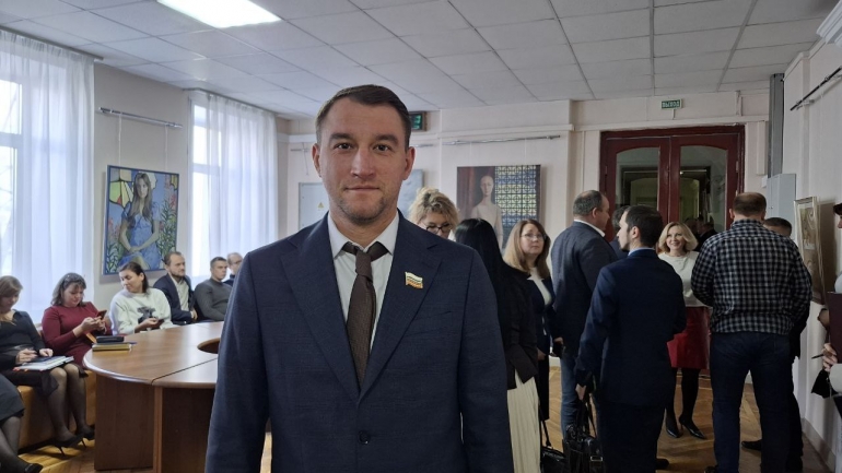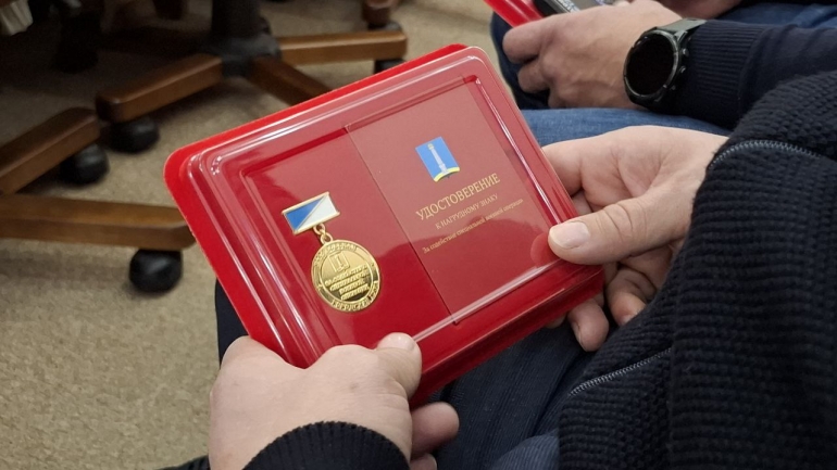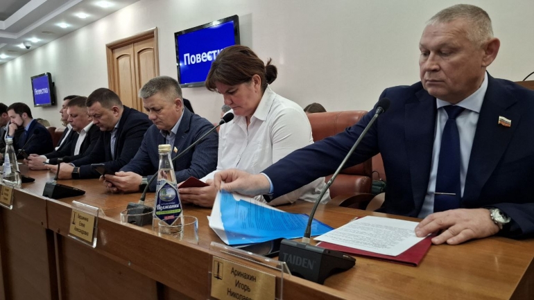 Илья Ножечкин объявил о начале очередного заседания. Перед тем как начать принимать бюджет, сначала отличившимся вручили нагрудные знаки УГД «За содействие специальной военной операции».
