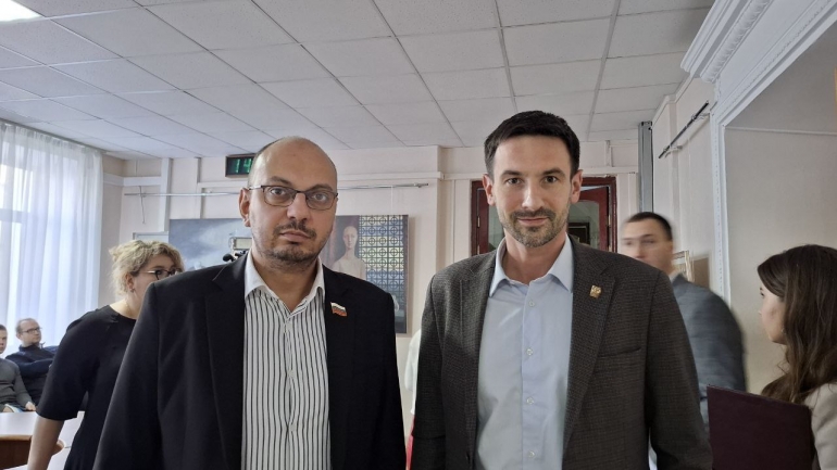 На заседание пришли 38 депутатов нового седьмого созыва из 40. Среди них Никита Комраков и Юрий Савинцев, а также Максим Захаров, грустный Майис Дадашов и Григорий Матвеев.