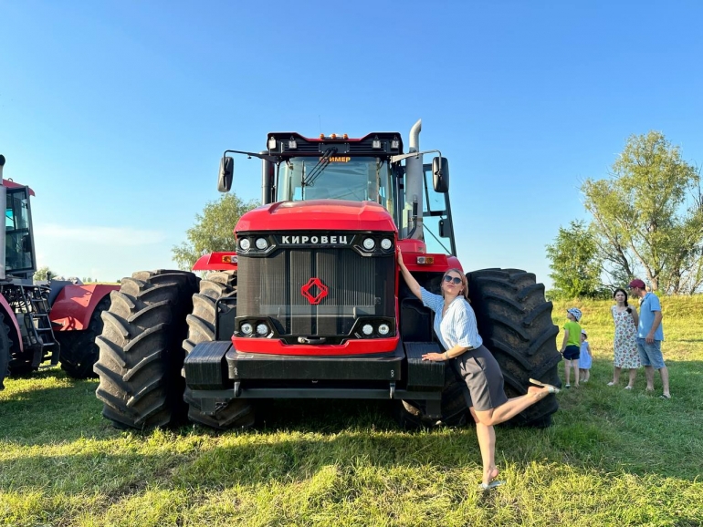 Главной фотозоной праздника стал красный красавец, трактор «Кировец» от фирмы «Тимер» Руслана Кантемирова. Организатор мероприятий Елена Вахитова не удержалась от фотосессии.