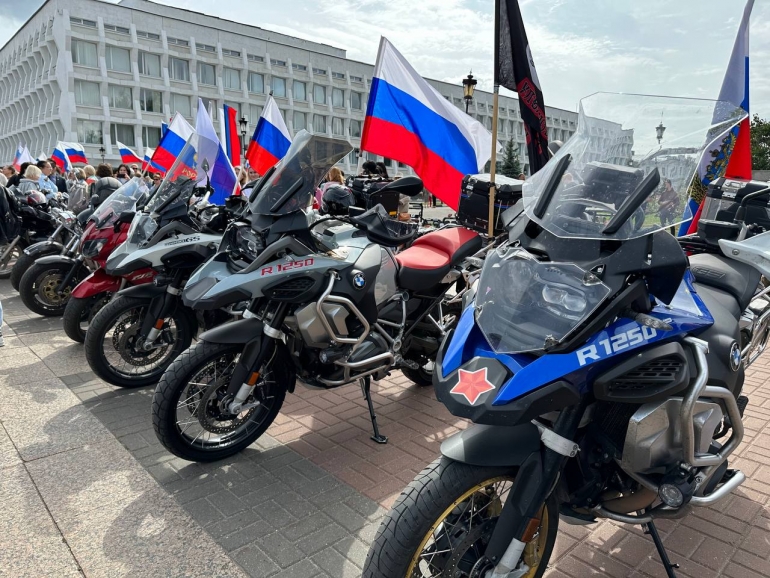 С площади стартует традиционный мотопробег, колонну поведет лидер «Ночных волков» в регионе, общественник Владимир Парфенов.