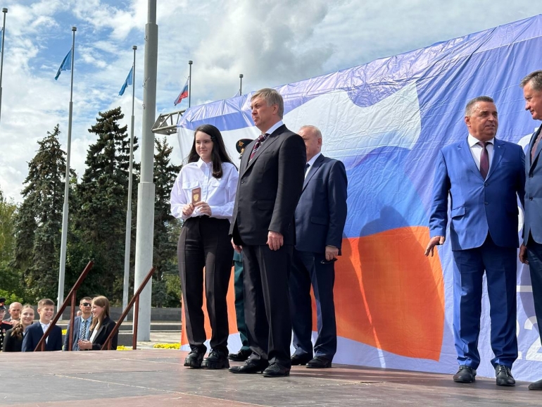 Губернатор Алексей Русских со сцены сказал, что российский триколор - символ любви к нашей родине, «который утверждает преемственность поколений, укрепляет патриотический настрой, объединяет в стремлении сделать Россию еще более могучей и прекрасной».