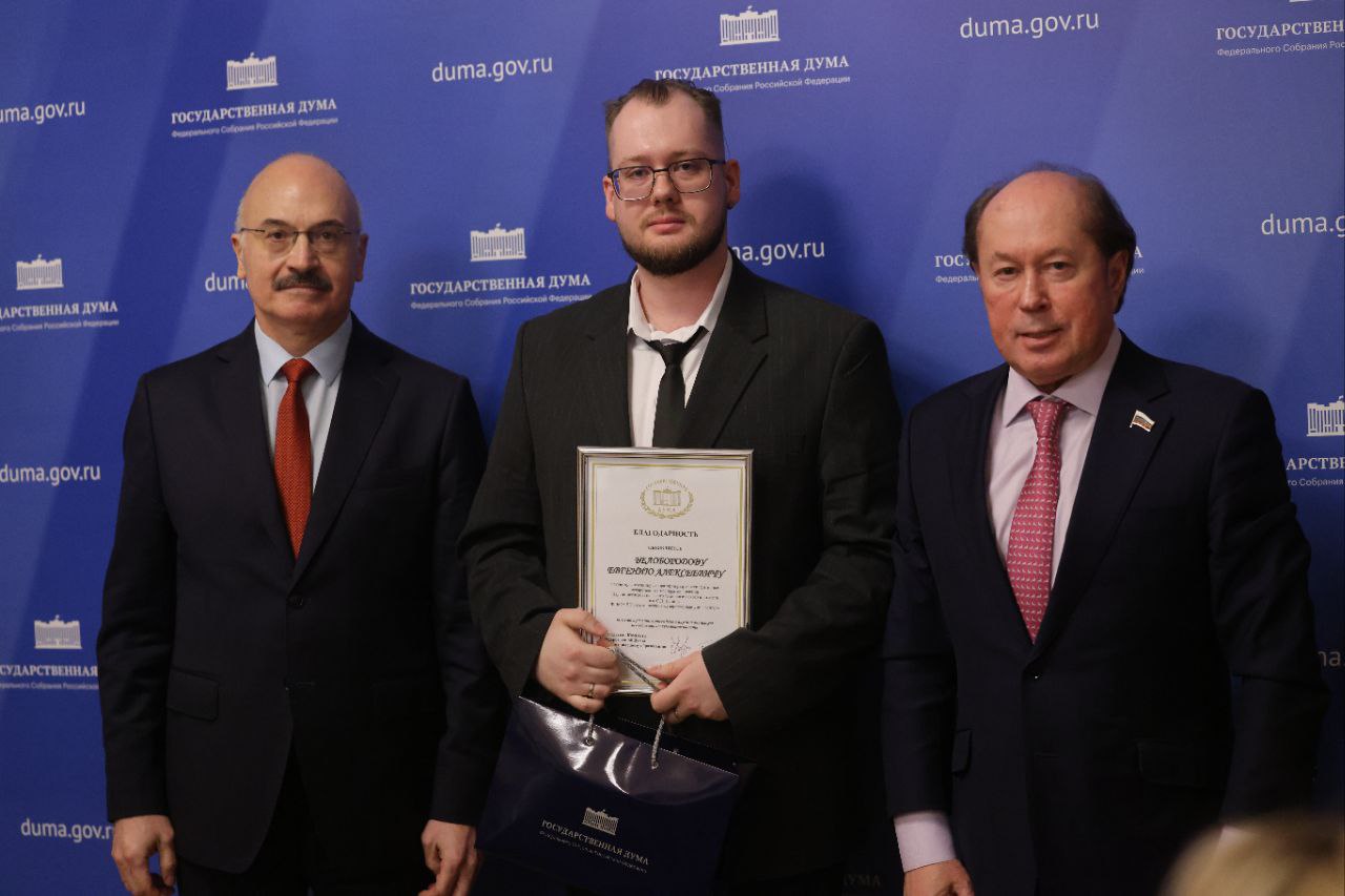Кононов поздравил Евгения с заслуженной наградой и выразил уверенность в том, что его работа — это весомый вклад в отечественную науку.