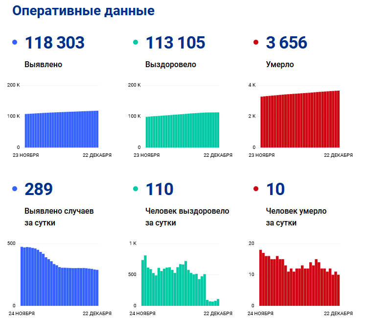 По данным федерального оперативного штаба на среду, 22 декабря, за сутки в Ульяновской области было подтверждено десять смертей от коронавируса, вылечилось 11о человек, заразилось 289.