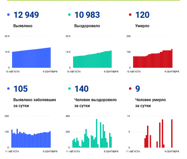 Таким образом, с начала пандемии в регионе зафиксировано 12949 заболевших COVID-19. Из них вылечились 10983 человека, умерло 120.