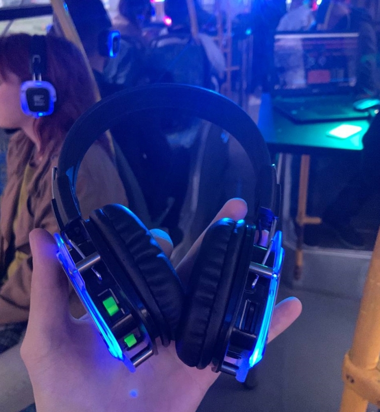 Гостям вручали беспроводные наушники и объясняли, как они работают: «Здесь прибавить звук, тут переключиться на другого диджея». В зависимости от выбранной волны, менялся цвет подсветки: один музыкант был «красным», другой — «синим». По какому принципу работает техника, точно корреспонденту объяснить не смогли: «Я гуманитарий, технологию не знаю, но это что-то наподобие радио», — ответил организатор.