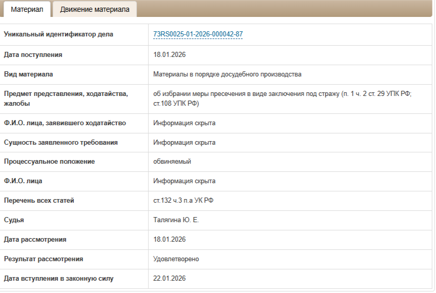 Источники 73online.ru в силовых структурах отмечают, что уголовное дело по ч. 2 ст. 242 УК РФ (незаконные изготовление и оборот порнографических материалов или предметов) не возбуждено. Видимо, характер записанного ролика сможет оценить лишь судебная экспертиза.