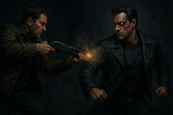 Вопреки ожиданиям Джона Конора стрелка, терминатор потерпевший лишь пошатнулся. Он развернулся и повалил на землю пенсионера с огнестрельной «трубой». После прибытия на место силовиков, обстрелянный обратился к медикам. Серьёзных повреждений он не получил.