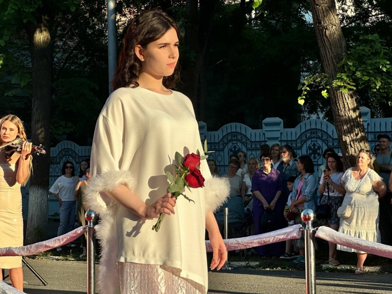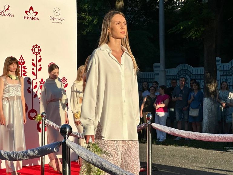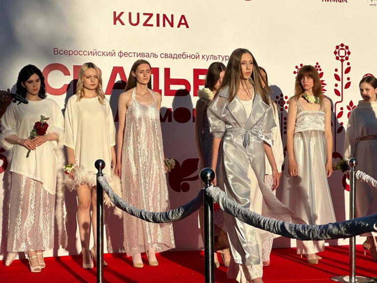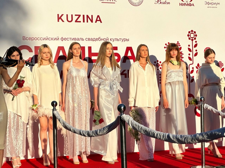 В День России дизайнер Ирина Малова устроила показ эксклюзивной свадебной коллекции своего бренда KUZINA. Изюминкой торжества стали необычные «модели», которые вышли на красную ковровую дорожку в лучах закатного солнца. Подробности в репортаже 73online.ru.