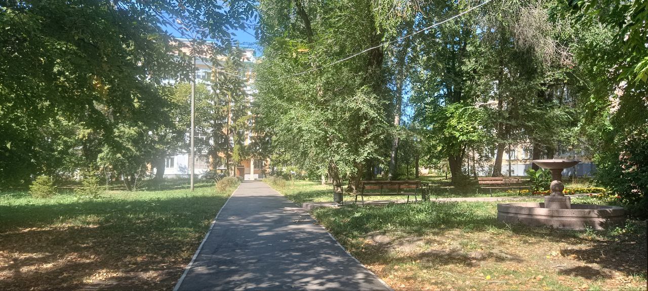 В сквере, расположенном между домами, изначально работал фонтан. В 80-е годы о нем напоминало лишь бетонное кольцо основания, почти скрытое землей. Сейчас имитация фонтана установлена в совершенно другом месте – рядом с бюстом М.Ю. Лермонтову.