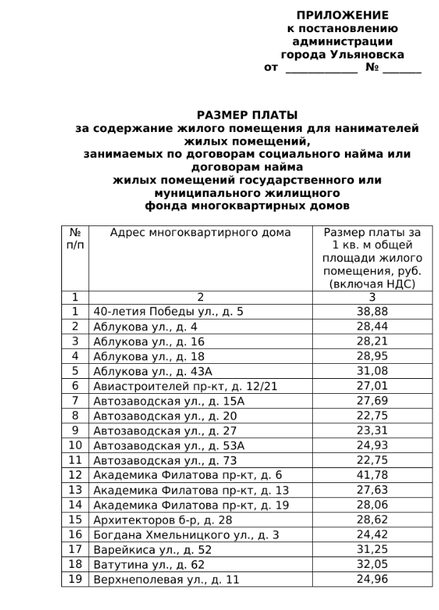 Так, размер платы за 1 кв. м. жилой площади, включая НДС, повысится до 19,98 — 43,25 рублей. С тарифами и перечнем адресов можно ознакомиться в приложении к постановлению.
