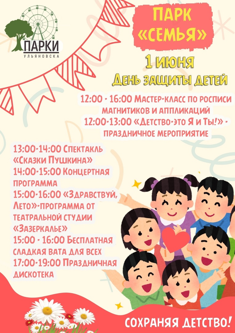 1 июня с 11:00 в парке Победы состоится большой праздник. В программе: 11:00 – 16:00 — Работа интерактивных, спортивных и досуговых площадок; 12:00 – 12:30 — Официальное открытие.