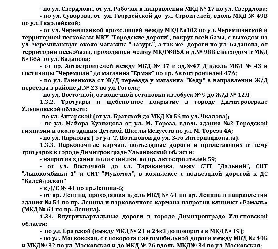 Муниципальное казенное учреждение «Городские дороги» опубликовало тендер на выполнение работ по ремонту асфальтобетонных покрытий дорог, внутриквартальных проездов, тротуаров, подъездных путей, парковочных карманов в Димитровграде.