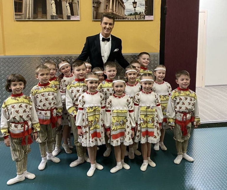 Хореографический номер "Половички новёхоньки" ставила педагог Наталья Афанасьева. Выпуск передачи был в пятницу, но на съёмки маленькие танцовщики ездили ещё в конце марта - и даже сделали фото на память с ведущим Алексеем Воробьевым.