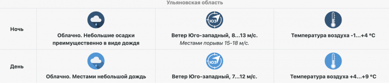 Ночью ожидается до +4, днем – до +9 градусов. Юго-западный ветер будет дуть со скоростью 7-12 м/с.