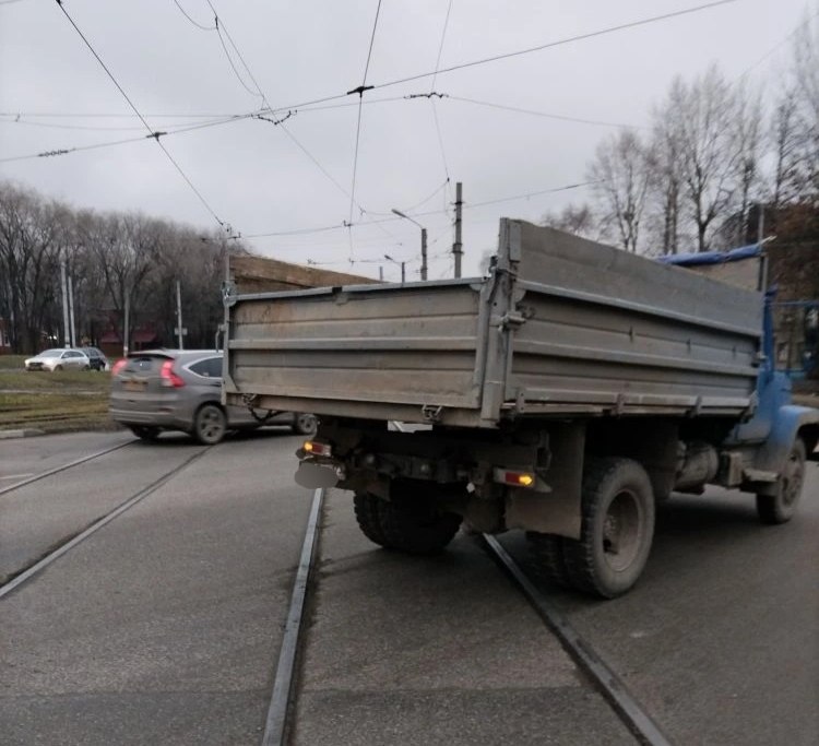 ДТП случилось на травмвайных рельсах, из-за чего движение электротранспорта парализовало.