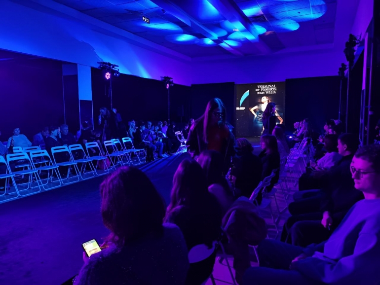 Праздник был масштабным и гости заняли треть второго этажа ТЦ «Пушкаревское кольцо». Предвкушение дефиле было похоже на магический ритуал. Нежная мелодия заполняла пространство, а сцена купалась в сиреневом свете.